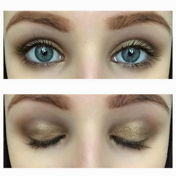 4. When satisfied with the degree of blending, dust a little Half Baked over the inner corner and centre of the eyelid, to give a warm golden shimmer.