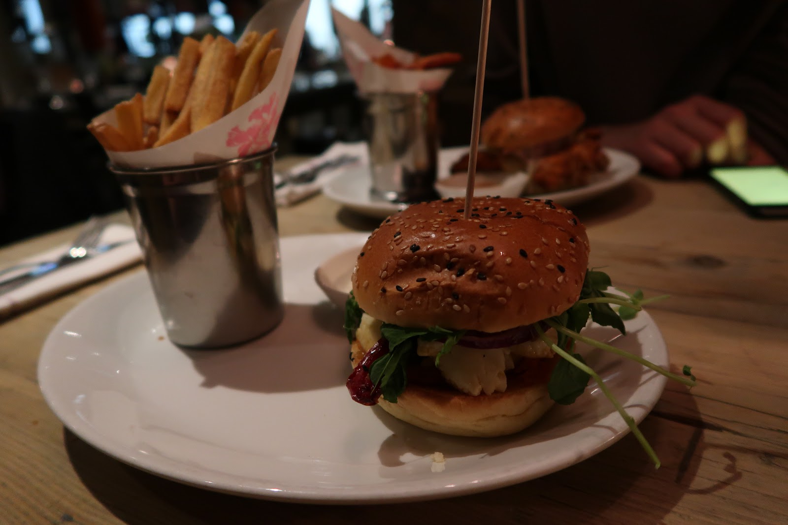 Both of us chose burgers for our main dish – a buttermilk chicken burger for Fahad and a halloumi one for me. The portion sizes were really impressive and there was actually a lot of flavour, with everything being well-cooked and nicely presented. I’d definitely recommend it if you’re in the area and looking for consistent, reasonably priced food!