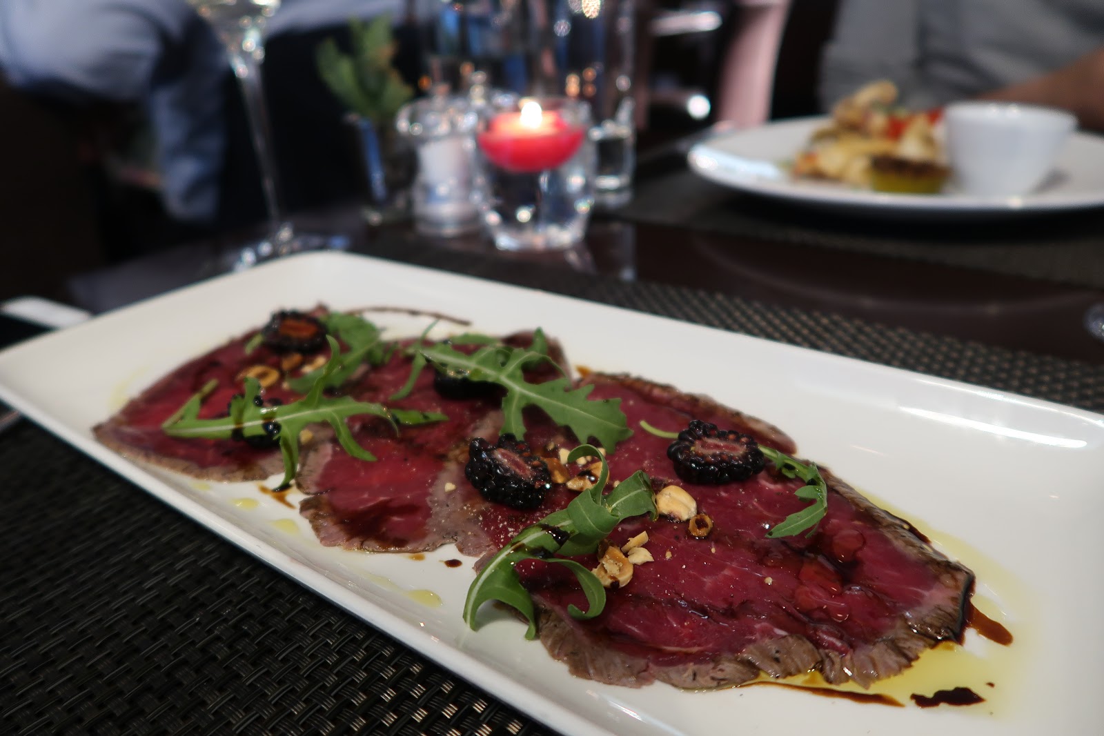 Our starters of beef carpaccio and crispy squid didn’t take long to arrive, which is quite surprising because the squid felt like it had been cooking for a WHILE. I’ve honestly never eaten anything like it in my life – I feel like Gordon Ramsay would compare it to chewing on Gandhi’s flip flop or something equally imaginative.