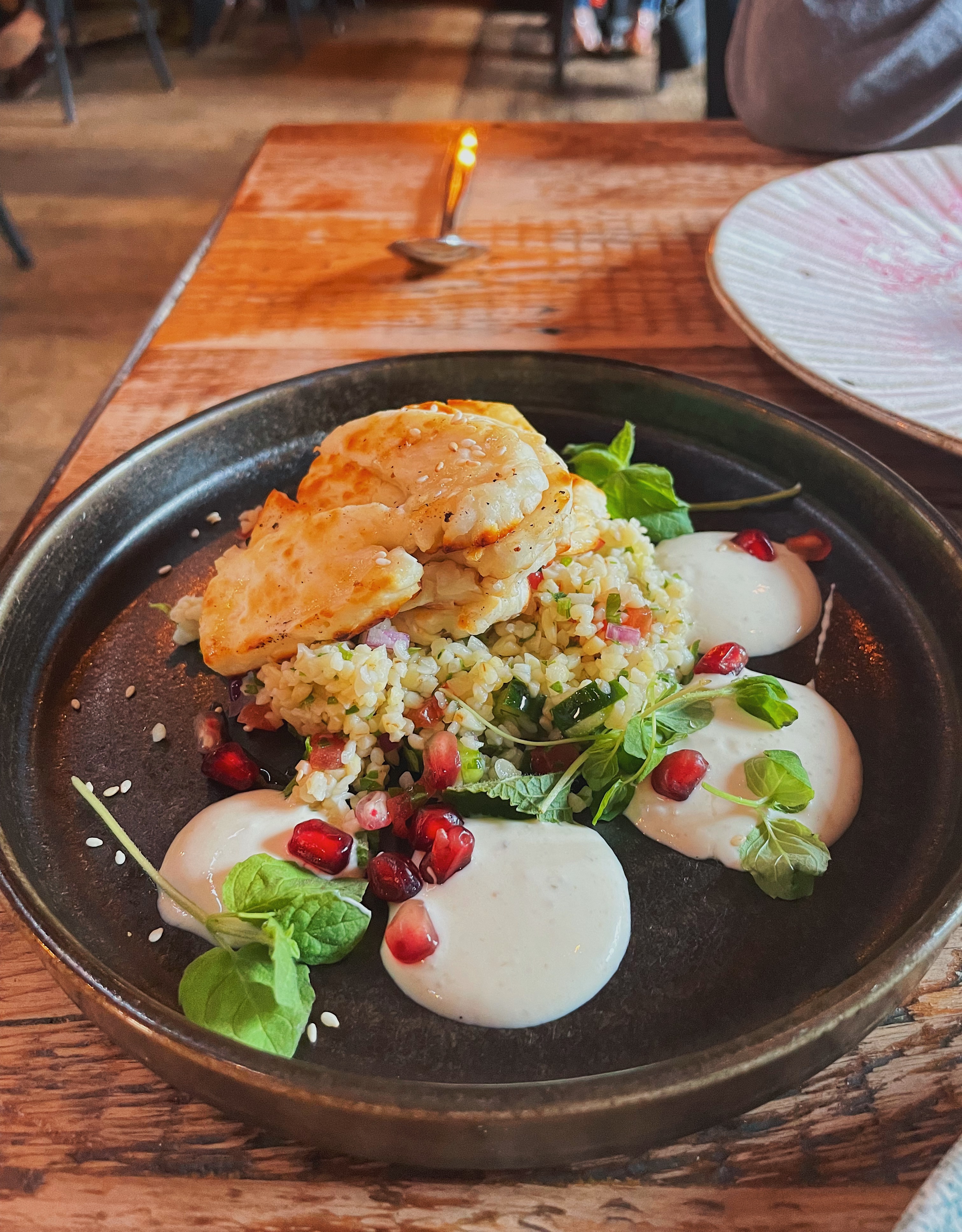 A plate that seemed a little out of place was the halloumi and couscous with pomegranate and mint yoghurt. Tasty enough, sure, but when you’re coming up against rich and robust flavour combinations, a bit of halloumi and couscous can seem a little underwhelming. But it was a hit with Fahad, so what do I know?